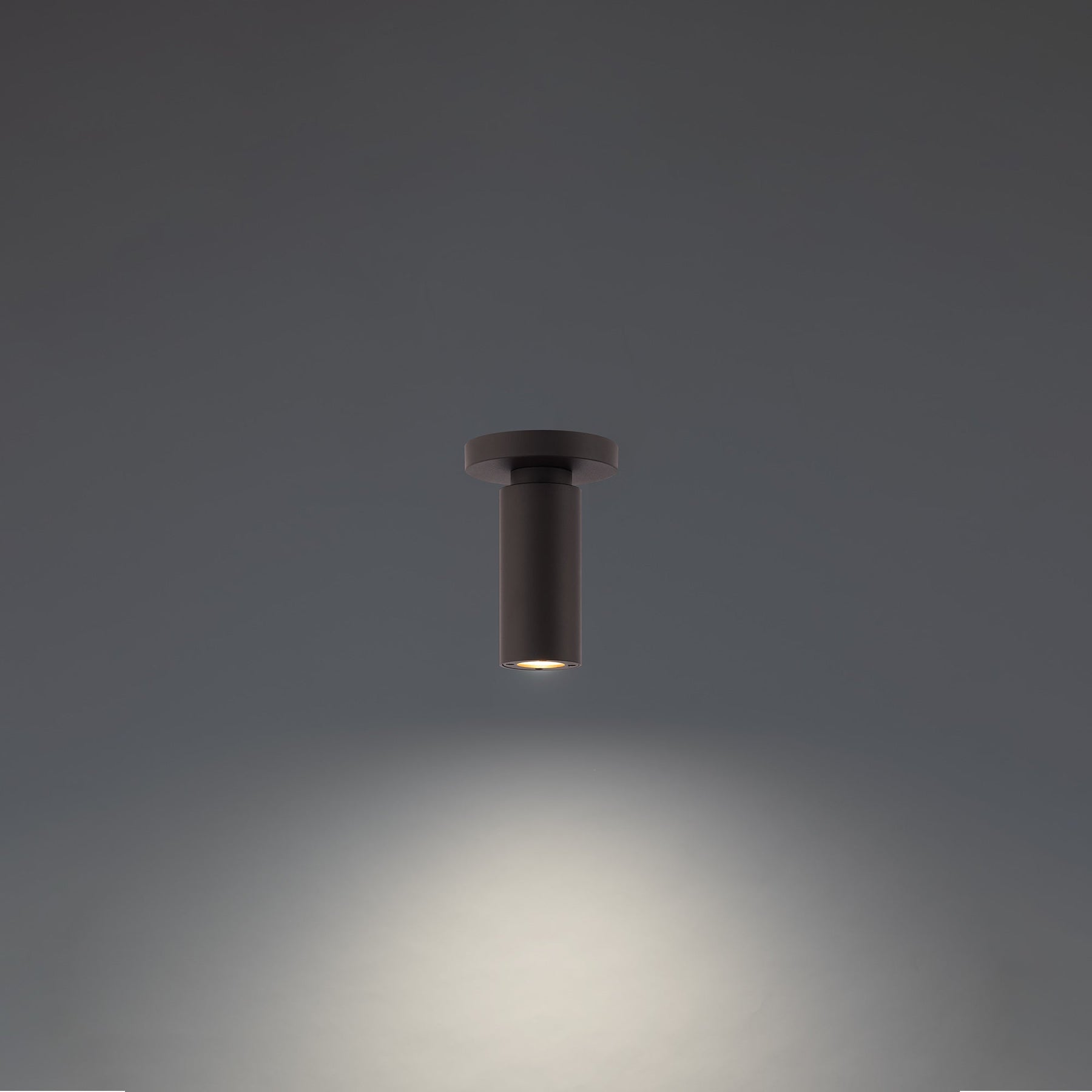 Caliber 5in LED Flush Mount 3000K in Bronze. Light projection tuned with precision. The Caliber outdoor ceiling mount joins a family of wall lights and a single pendant. With cylindrical aluminum body construction and acrylic diffuser, features a clear downward beam of light. Caliber is wet location listed - it can be used indoor or outdoor. This fixture can be mounted only on the ceiling. Universal Input Voltage Driver (120V-240V-277V) concealed in fixture. Smooth and continuous dimming with electronic low voltage 0-10V, ELV,TRIAC dimmer options. High Powered Replaceable LED Module CRI: 90, Rated Hours: 50000, Color Temp: 3000K Standards: ETL & cETL UL 1598 listed with IP65 rating for Wet Locations. CEC Title 24 compliant.