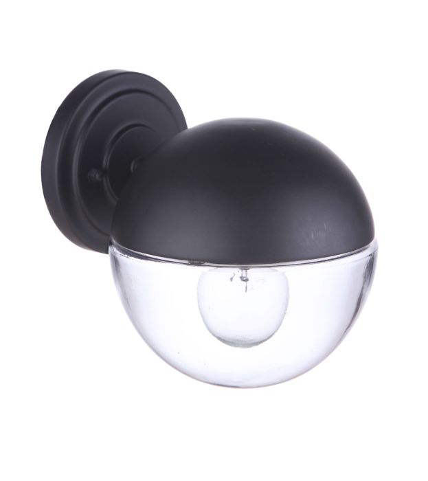 The Evie 1 Light Small Outdoor Wall Mount in Midnight is a perfect fusion of mid-century and contemporary design, making it a stylish addition to any outdoor space. This fixture is wall-mounted and wet rated, ensuring durability in various weather conditions. It requires one medium base 60 watt bulb (not included) for optimal illumination. Measuring 6.50 inches in width, 7.25 inches in height, and extending 7.76 inches from the wall, it fits seamlessly into a range of settings. The Evie's finish is protected against fading with a five-year UV guarantee, ensuring a long-lasting aesthetic appeal.