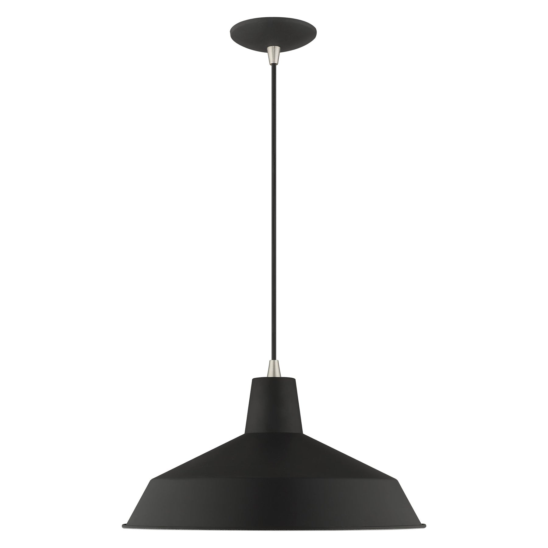 The 41183-04 Metal Shade Mini Pendant is a striking lighting fixture designed for urban aesthetics. Featuring a sleek black finish, this pendant light has a unique black metal shade with a gold finish on the inside, offering a beautiful contrast. It accommodates one medium base bulb (not included) with a maximum wattage of 60W. The height is adjustable from 14 inches to 75 inches, and it boasts a diameter of 16 inches. Ideal for damp locations, it is a versatile choice for various settings while exuding industrial chic style.