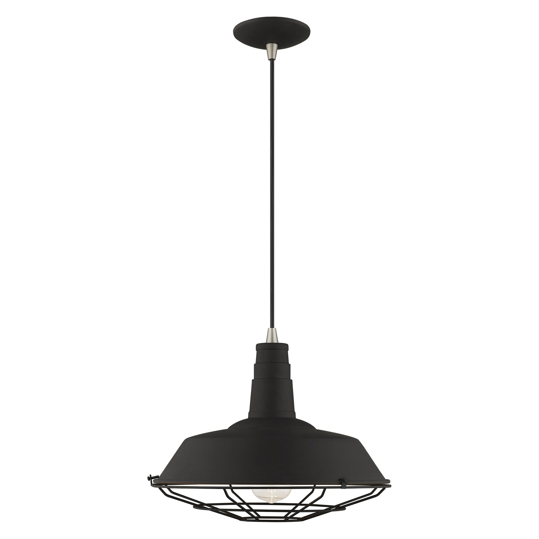 Glass/Shade Type:Black Metal Shade with Black Wire Cage and Gold Finish Inside