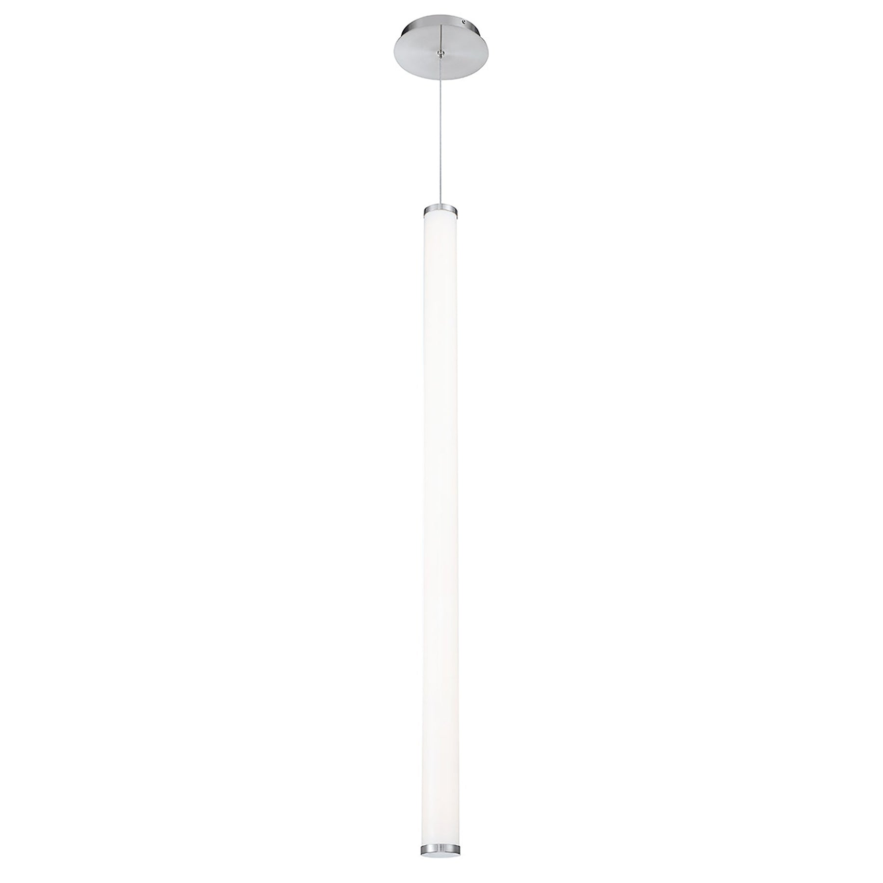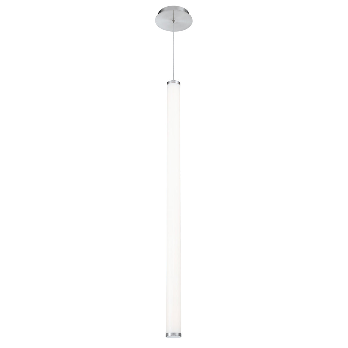 Flare 45in LED Mini Pendant 3000K in Brushed Nickel. Symmetrical, cylindrical and aerodynamic. Brilliance alone or in pairs. Energy efficient integrated LED's provide a long-lasting maintenance-free bright and even illumination. Ultra-sleek electrified cable eliminates the need for clunky power wires. Height is simple to adjust through push pin connectors on the canopy. Extruded acrylic diffuser available in 4 sizes. Cylindrical design. Can be mounted on a slope ceiling. Ultra-sleek electrified cable eliminates the need for clunky power wires. Height is simple to adjust through push pin connectors on the canopy. Sloped ceiling compatible. Universal Input Voltage Driver (120V-240V-277V). Custom CCT options available by special order. Smooth and continuous dimming with an electronic low voltage (ELV), TRIAC, or 0-10V dimmer. High Powered Replaceable LED Module CRI: 90, Rated Hours: 50,000, Color Temp: 3000K Standards: ETL & cETL UL 1598 listed for Damp Locations. CEC Title 24 Compliant.