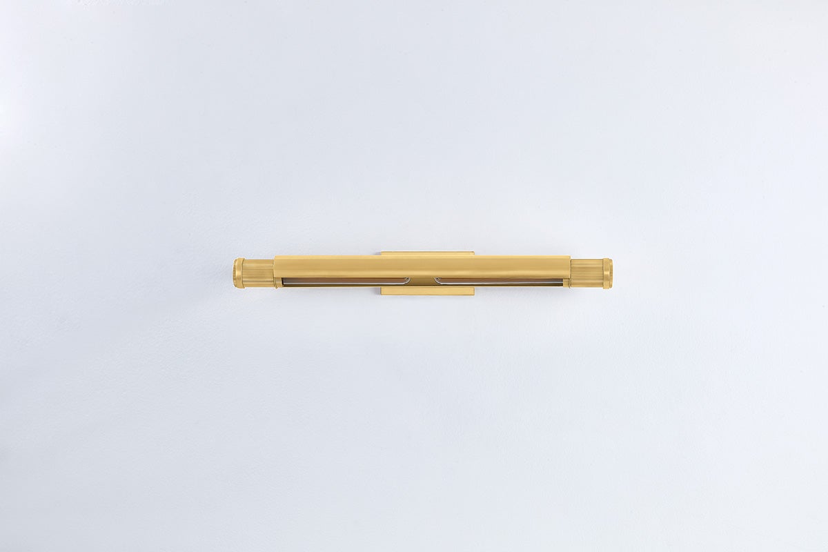 The Elm Park Wall Sconce by Hudson Valley Lighting is a striking blend of style and functionality. This fixture features two E26 medium base sockets, supporting a maximum wattage of 15W per bulb (bulbs not included). With a width of 24.00 inches and a height of 3.00 inches, it projects elegantly with a 7.50-inch extension, while the top-to-center measurement stands at 1.50 inches. Available in sophisticated finishes including Aged Brass and Aged Brass/Distressed Bronze, this sconce is UL Damp rated, making it suitable for a variety of indoor spaces, especially humid areas.