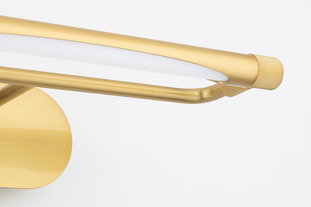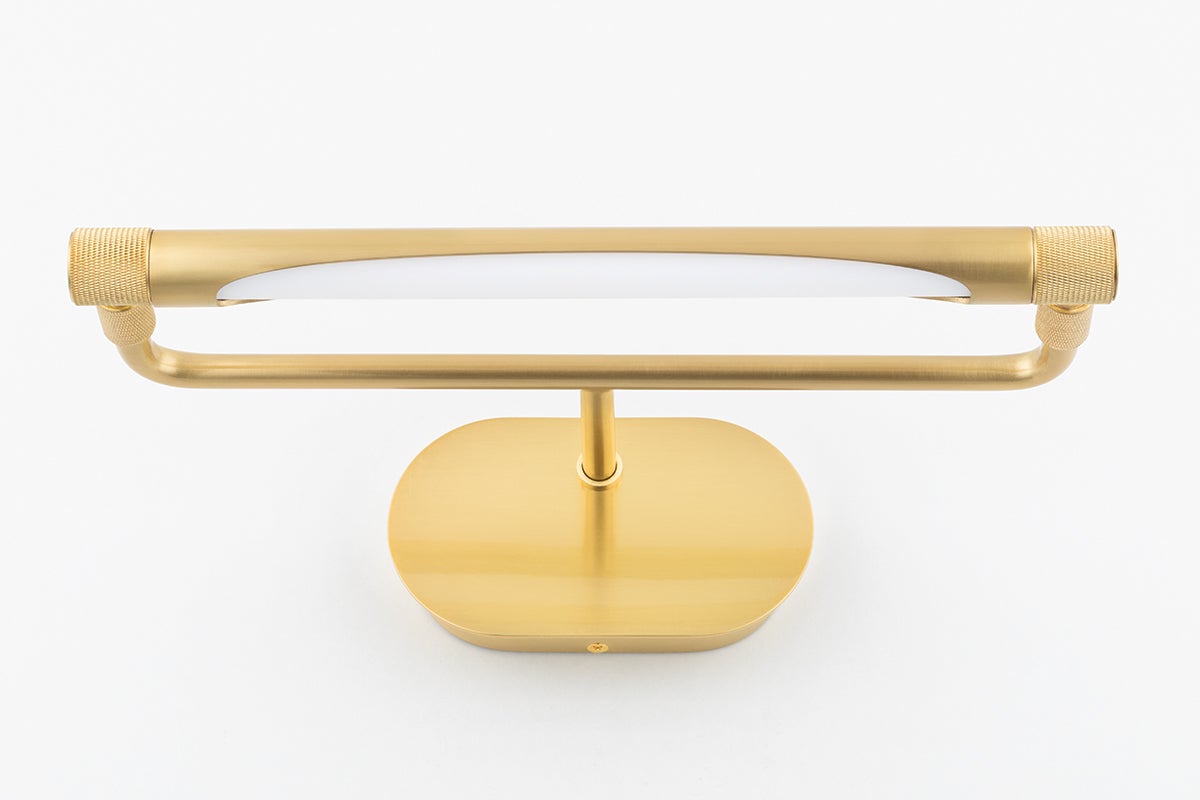 The Berkshire Wall Sconce by Hudson Valley Lighting in Aged Brass combines modern design with durable materials, making it a refined choice for your lighting needs. This sconce features a sleek steel shade that measures 13.00 inches in diameter and stands 3.50 inches tall with a 7.50-inch extension from the wall. It uses an integrated LED socket, providing an energy-efficient 8 watts of illumination, and delivers a warm color temperature of 2700K with a high CRI of 90, yielding 425 lumens. Designed for both style and functionality, it is field serviceable and UL Damp rated, making it suitable for various environments, although it is not plug-in compatible.