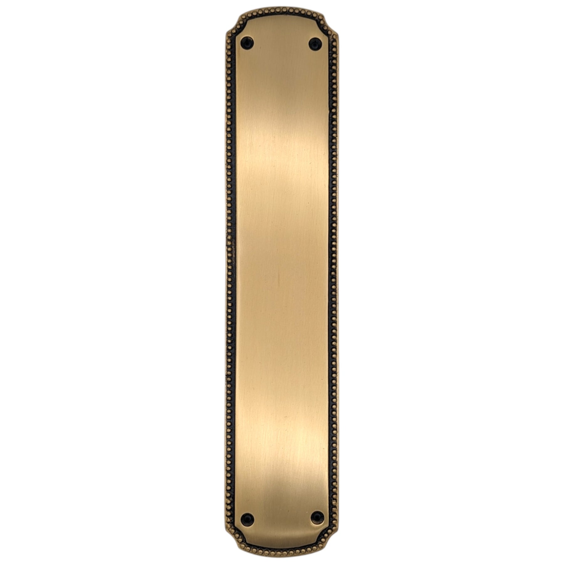 The Beaded Signature Door Push Plate showcases a classic elongated form highlighted by a raised beaded pattern along its edges. Crafted from solid brass, this push plate offers both strength and sophistication, making it an elegant choice for entry doors, interior doors, or large cabinetry. Pair it with the coordinating Beaded Signature Knob and Ring Pull to achieve a refined, cohesive look throughout your home.