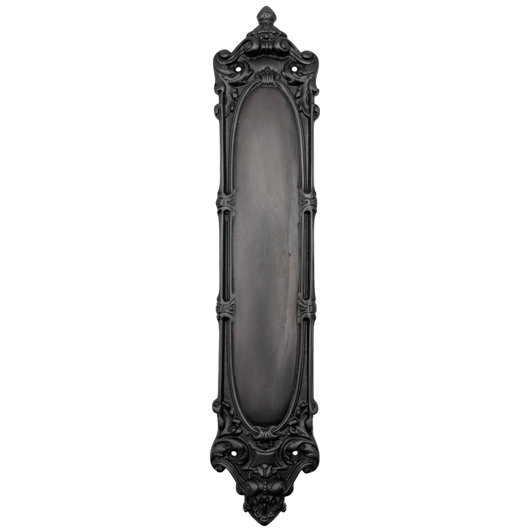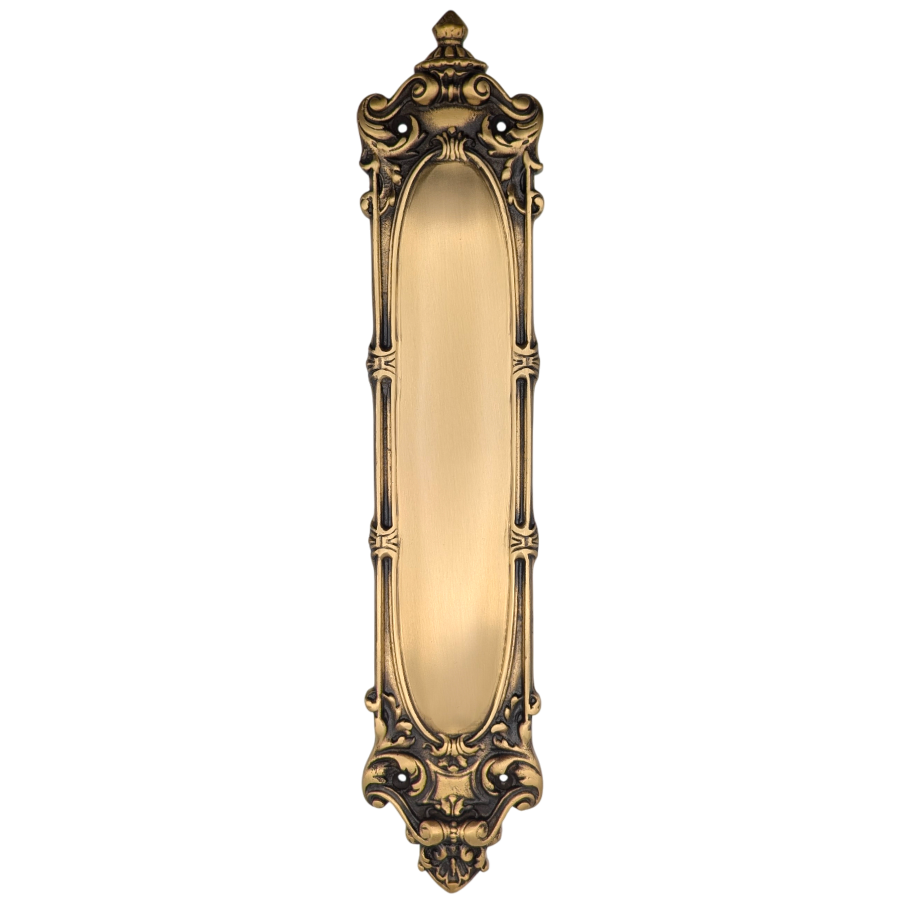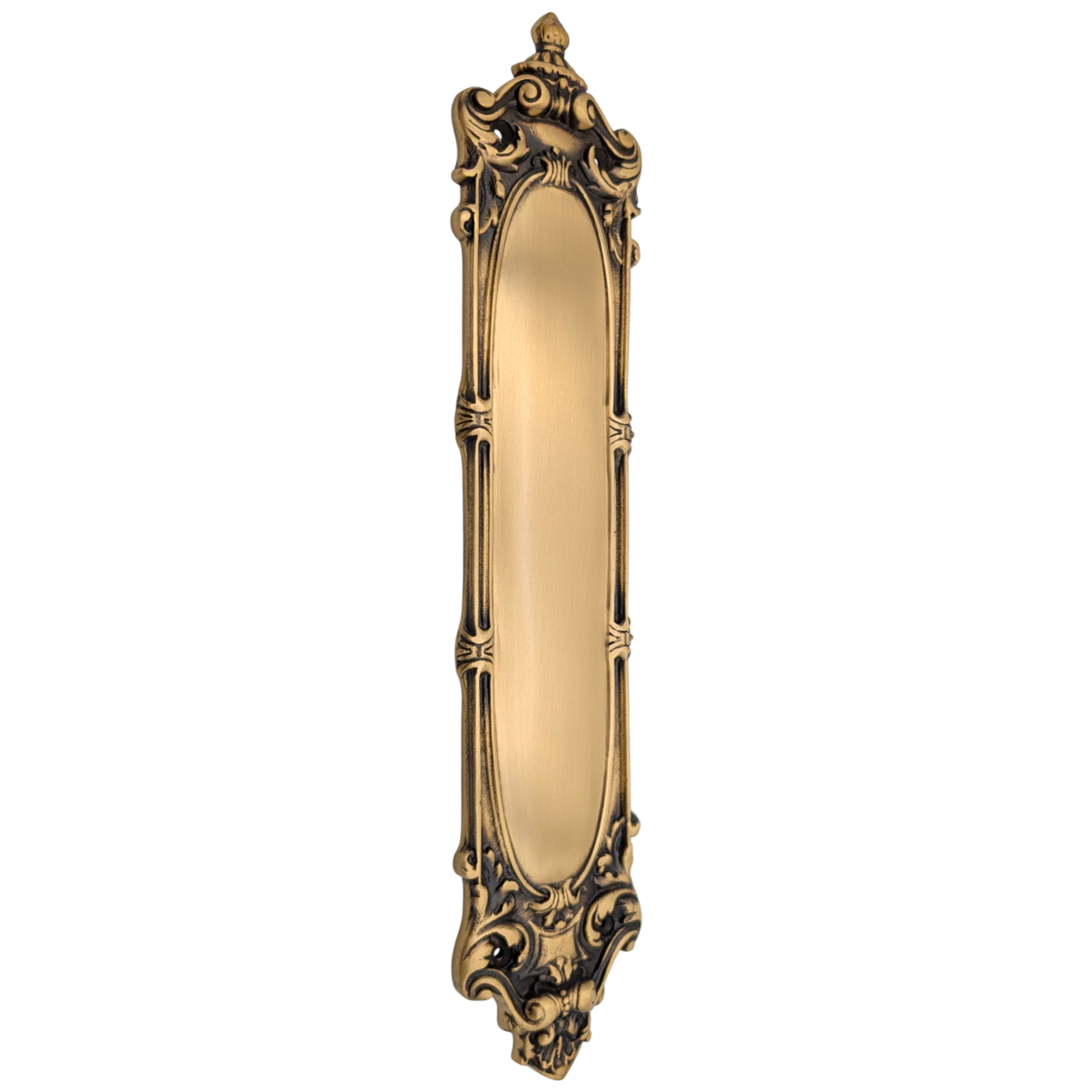 This Victorian Pattern Push Plate or Finger Plate comes with Mounting Hardware and measures 15 Inches by 3 1/8 Inches. This particular product has a lead time of approximately 2 to 3 business days.