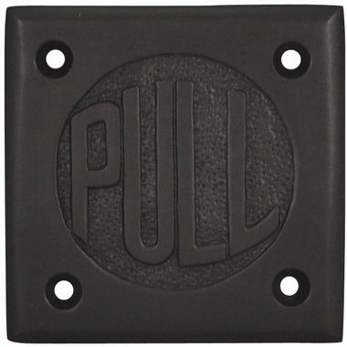The plate measures 2 3/4 Inches on all sides and is approximately 1/8 of an inch thick. Mounting hardware is included. This product comes as an unlacquered natural brass and it will patina over time. A high strength lacquer coating is available upon request. Available in a number of finishes including, antique brass, polished brass (shown), Black Bronze, polished chrome. A "PUSH" variation is also available.