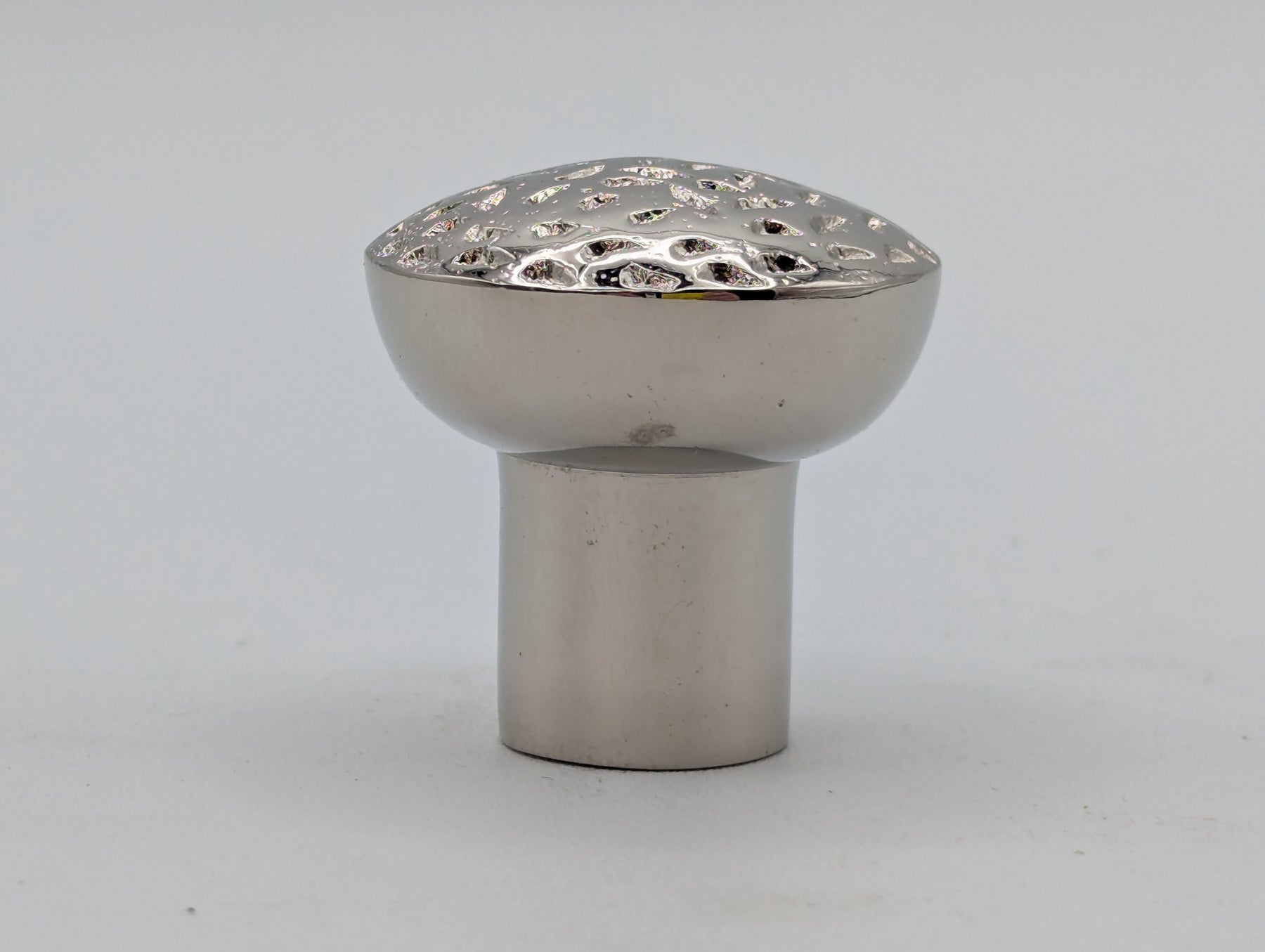 1 1/4 Inch Solid Brass Hand-Hammered Round Knob - Measures 1 1/4 inch in diameter with a projection of 1 inch. Comes complete with mounting hardware.