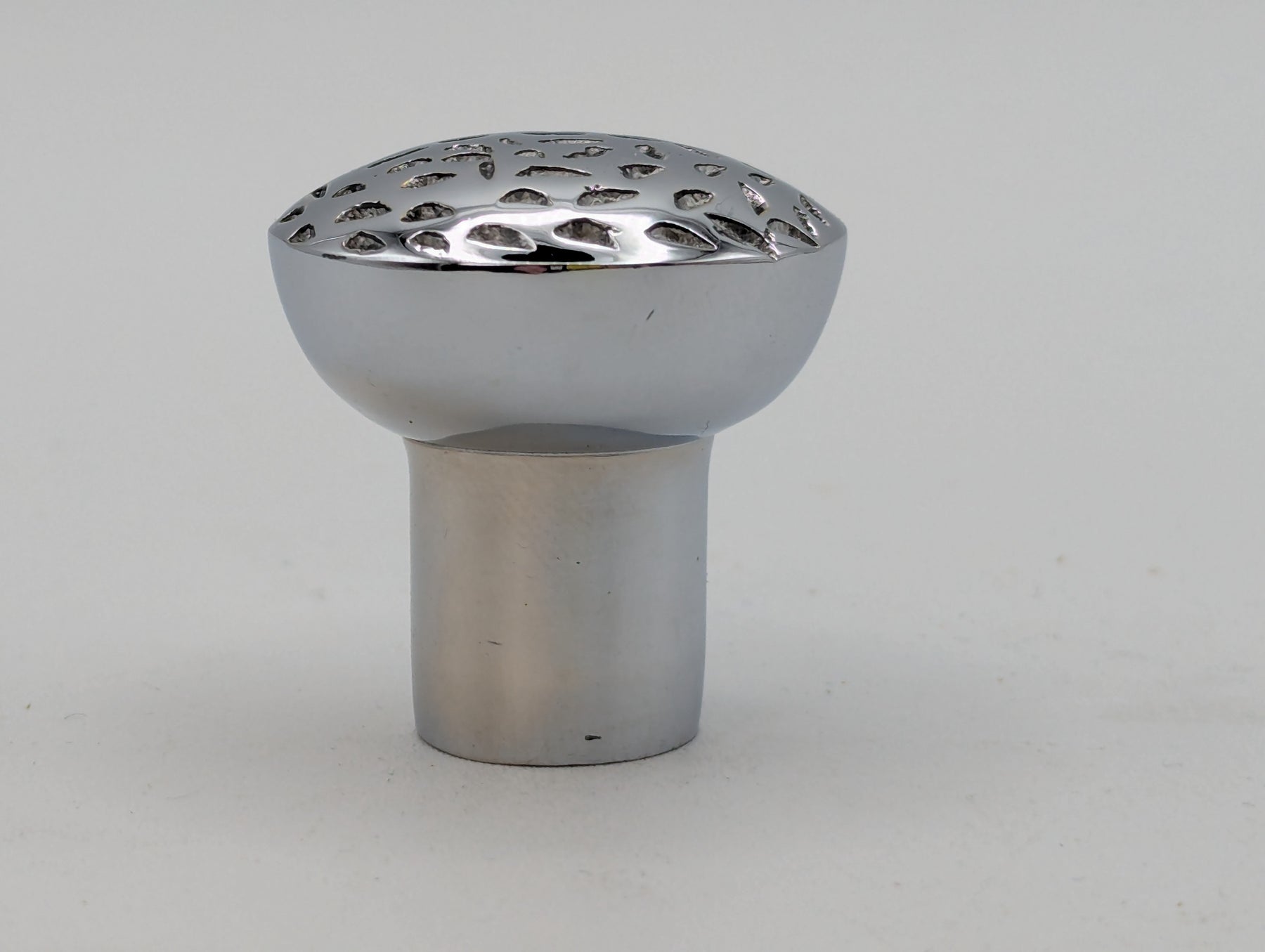 1 1/4 Inch Solid Brass Hand-Hammered Round Knob - Measures 1 1/4 inch in diameter with a projection of 1 inch. Comes complete with mounting hardware.