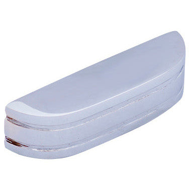 2 3/4 Inch Overall ( 2 1/2 Inch c-c) Solid Brass Art Deco Simple Cup Pull (Polished Chrome Finish) - each cup pull measures 2 7/8 inch wide and 3/4 inch tall. Each pull has a projection of 5/8 inch. This Deco cup pull mounts with two machine screws (from the rear) with a center to center mounting distance of 2 1/2 inches. This item is available in several finishes.