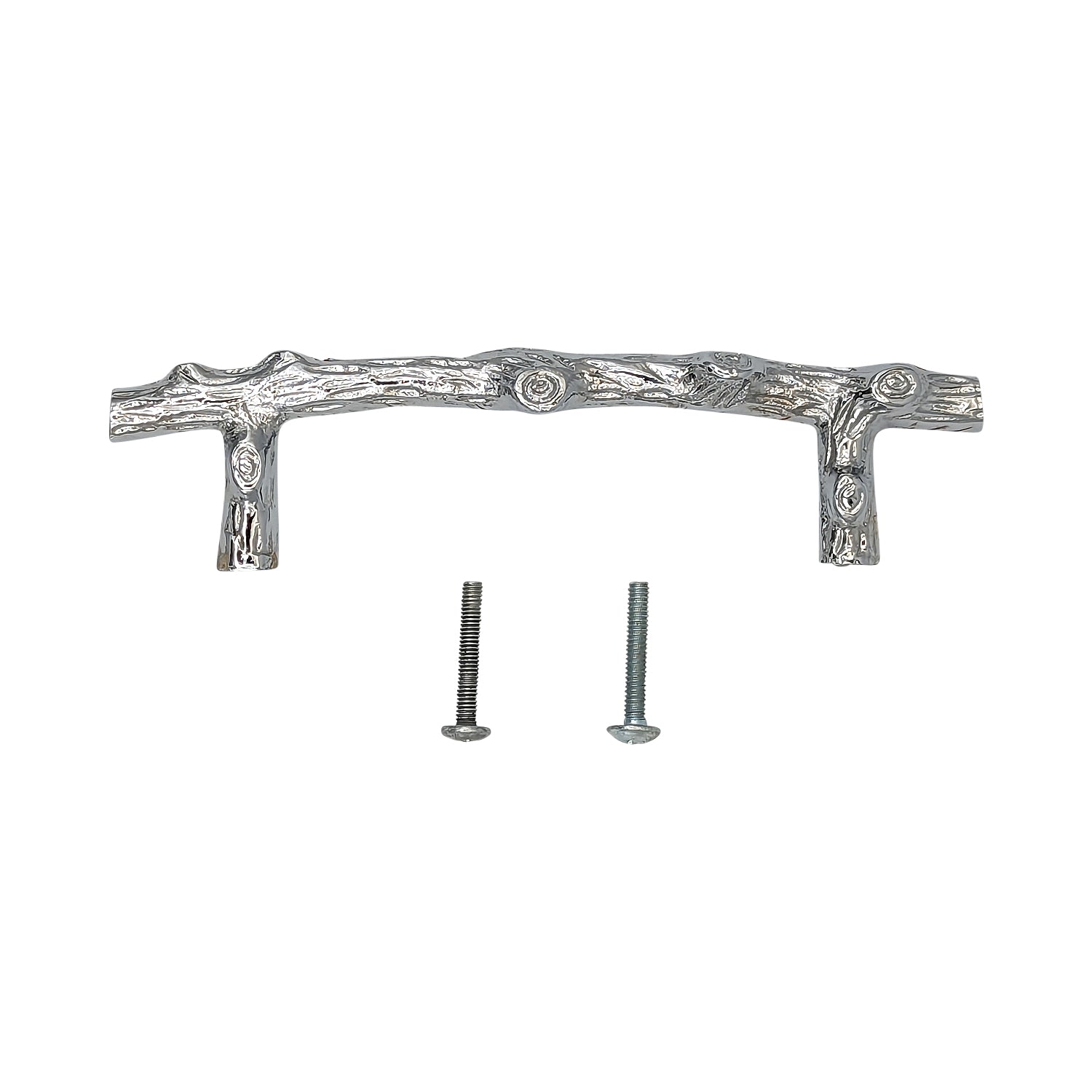 This tree branch handle is made from solid brass construction for decades of service. Center to center is 4 inches. The handle measures 5 5/8 inches long with a projection of 1 3/8 inches. Each "branch" is 3/8 inches in diameter. Comes complete with mounting hardware. Available in several finishes including Polished Chrome and Polished Nickel. The average lead time for this particular product is 2 to 4 Business Days.