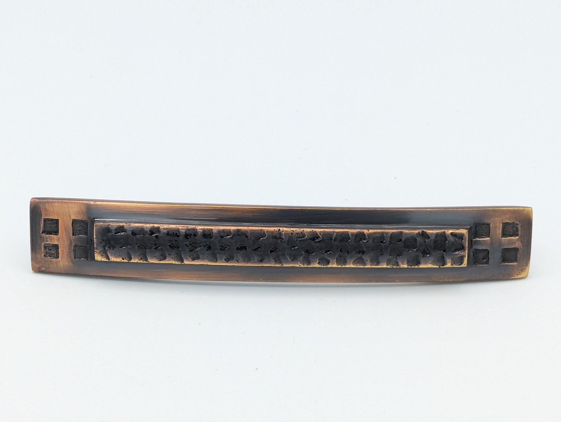 ##Antique Hardware## Open Box Sale Item 5 Inch Overall (3 1/2 Inch c-c) Solid Brass Craftsman Hammered Drawer Pull (Antique Copper Finish)