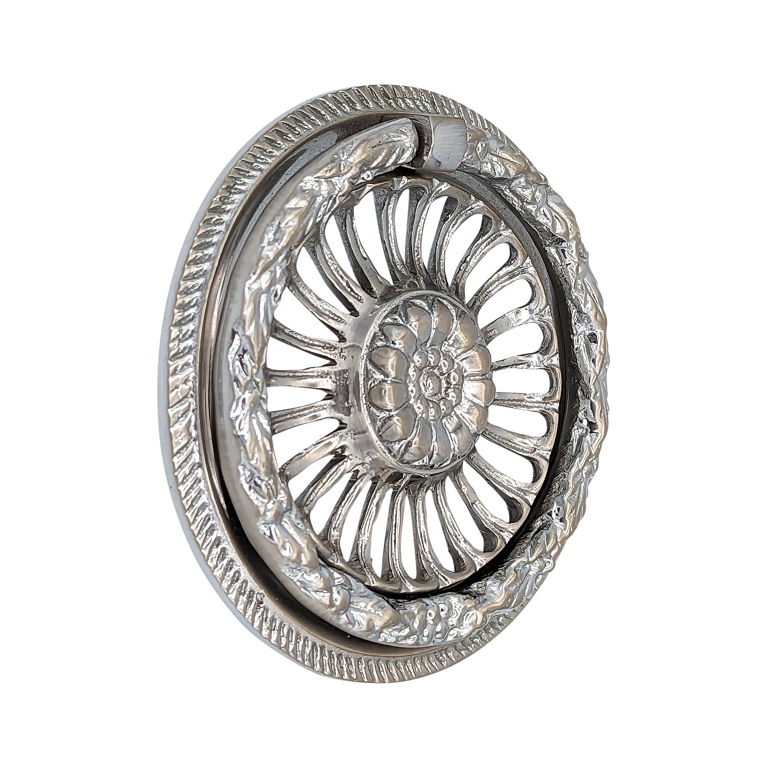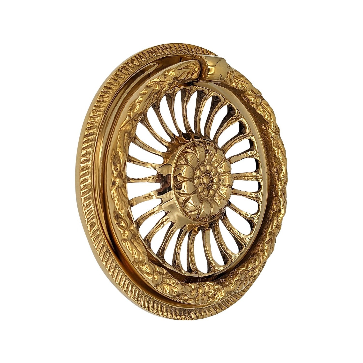 Measures 3 5/8 inches in diameter with a ring size of 3 1/4 inches. Solid brass construction for decades of service - these drawer ring pulls are hand cast and hand finished.