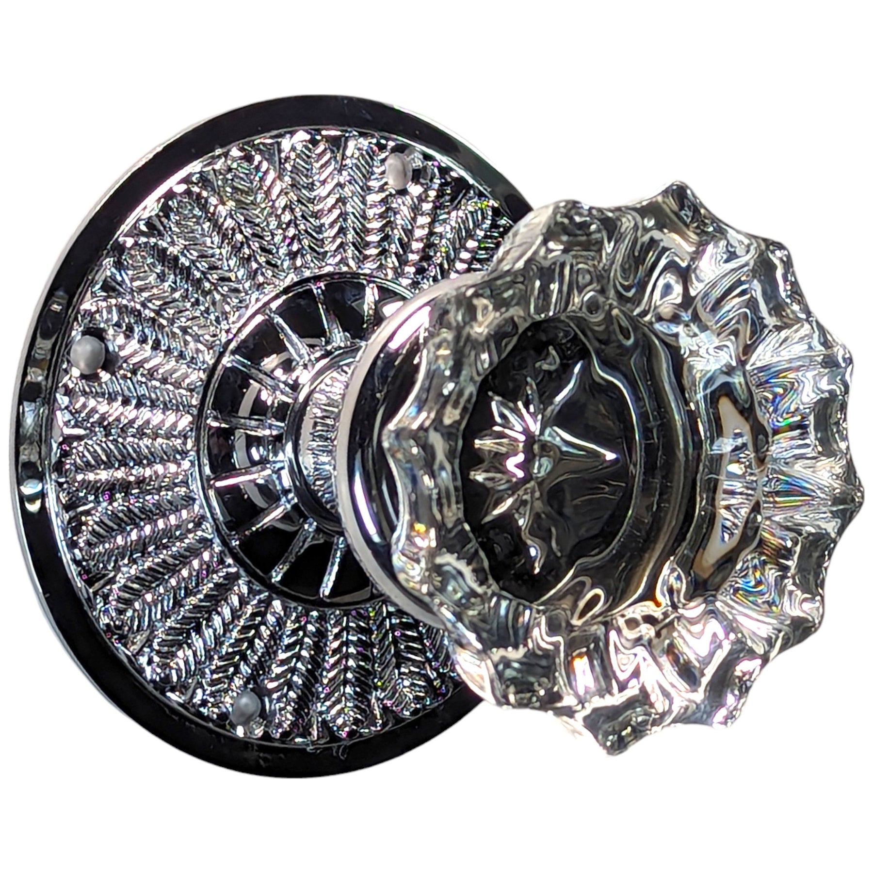 Feather Rosette Door Set with Fluted Crystal Door Knobs (Several Finishes Available)