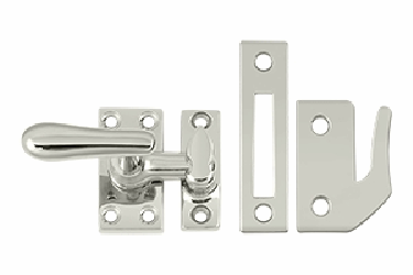 This window lock measures 2 1/16 inches in length and 1 1/16 inches wide. Also features a projection of 1 7/8 inches. These locks are designed to add security and style to your windows. They are available in a variety of finishes including polished brass, antique brass, oil rubbed bronze, polished chrome and brushed nickel. The average lead time for this window lock is approximately 3 to 5 business days.