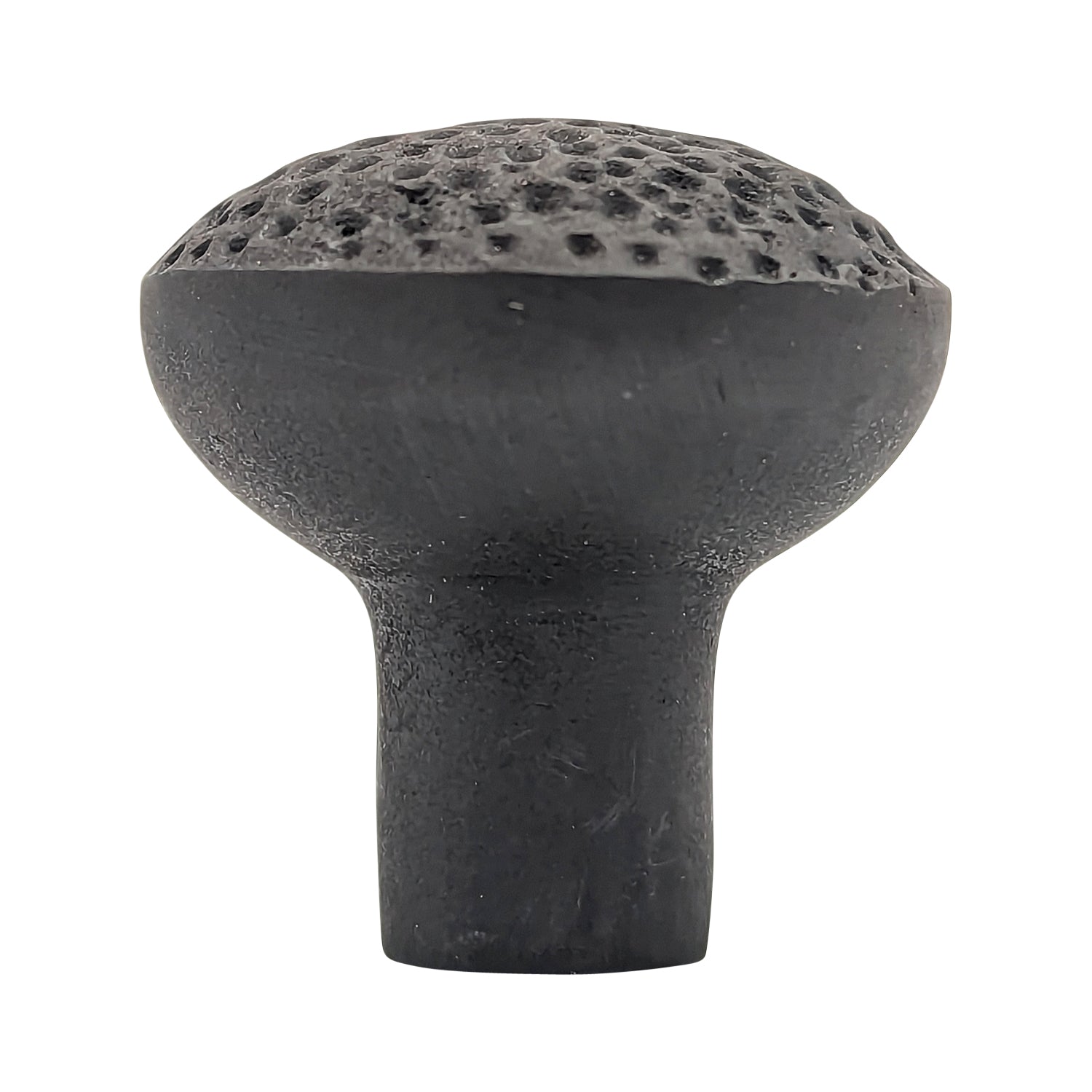 1 1/4 Inch Solid Brass Hand-Hammered Round Knob - Measures 1 1/4 inch in diameter with a projection of 1 inch. Comes complete with mounting hardware.