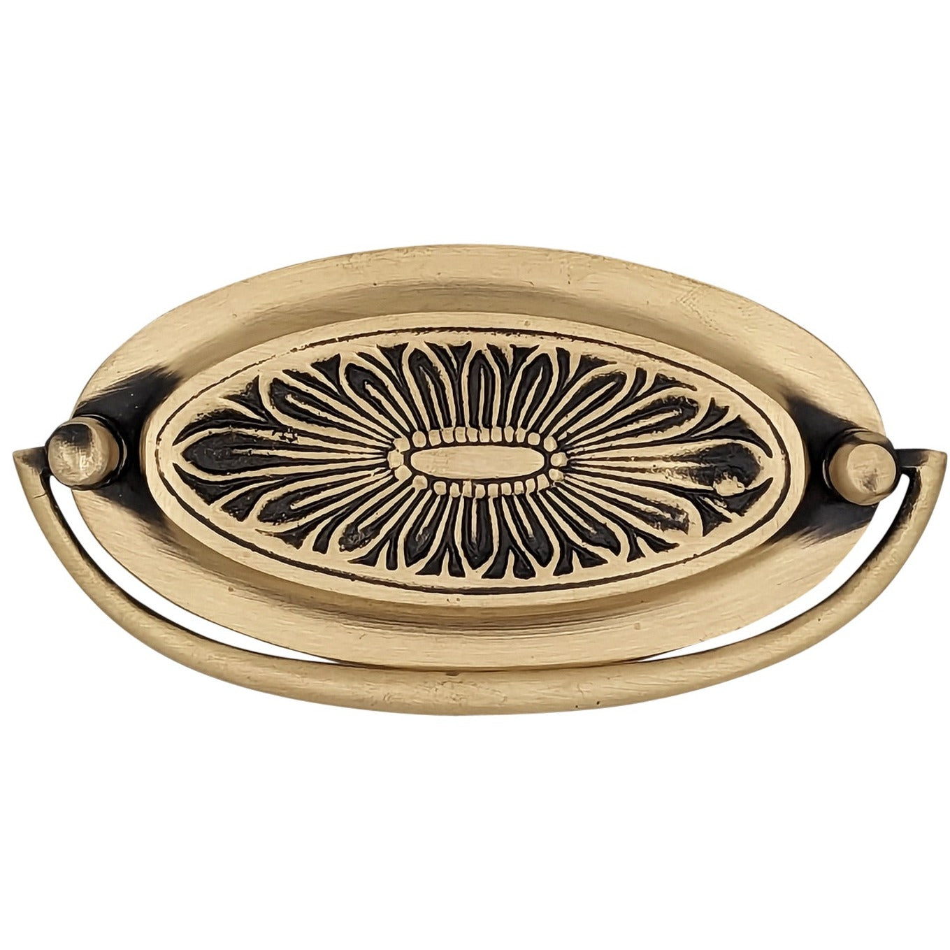 4 1/2 Inch Overall (3 3/4 Inch c-c) Solid Brass Oval Bail Pull (Antique Brass Finish)