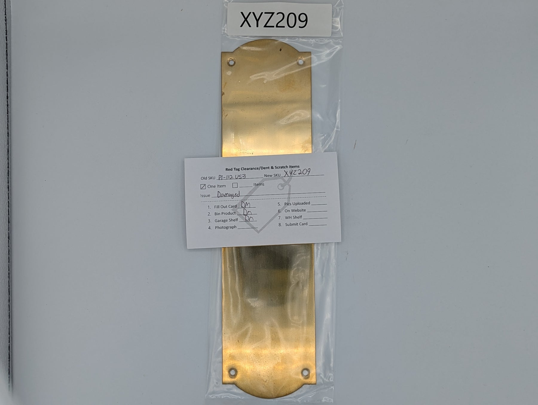 This oval shaped push plate is finished in polished brass and made from solid brass material. Measures 12 inches long and 3 inches wide and comes complete with mounting hardware. This particular product has a lead time of approximately 2 to 4 business days.