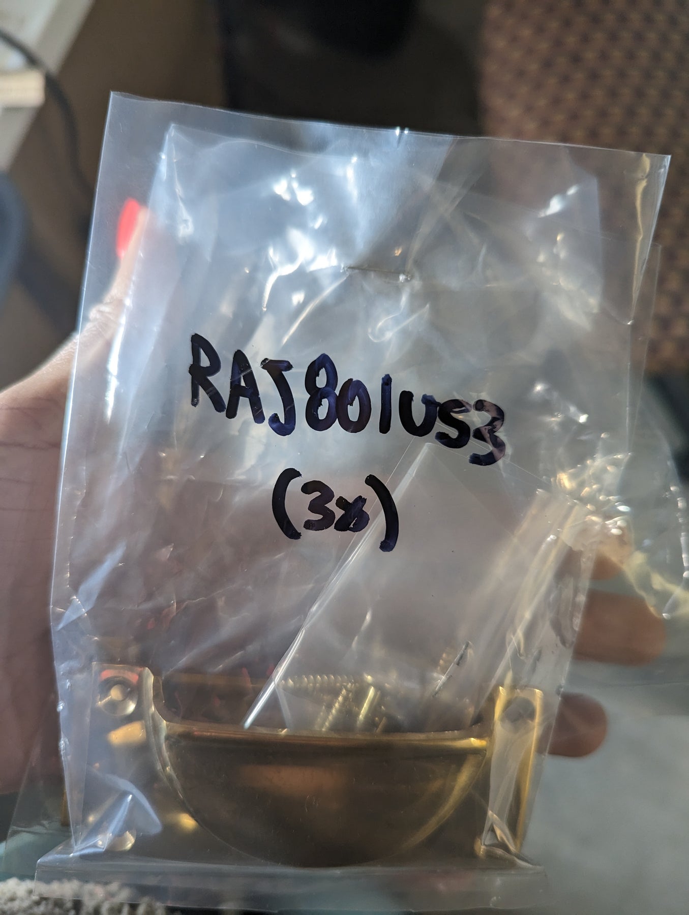 Measures 3 1/2 inches wide and 1 5/8 inches tall. Solid Brass construction. Projection of 5/8 inches. This product comes as an unlacquered natural brass and it will patina over time. A high strength lacquer coating is available upon request. Comes complete with mounting hardware. Available in a variety of fine finishes.