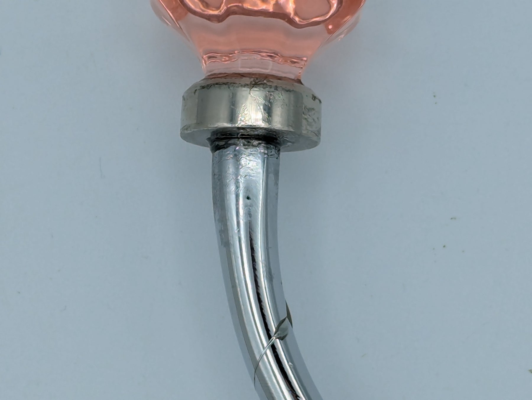 Open Box Sale Item 7 Inch Solid Brass Coat Hook & Old Town Pink Glass Knob