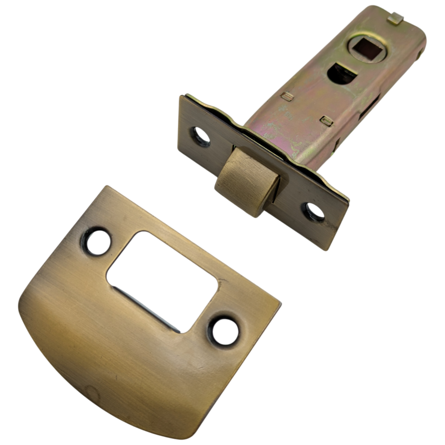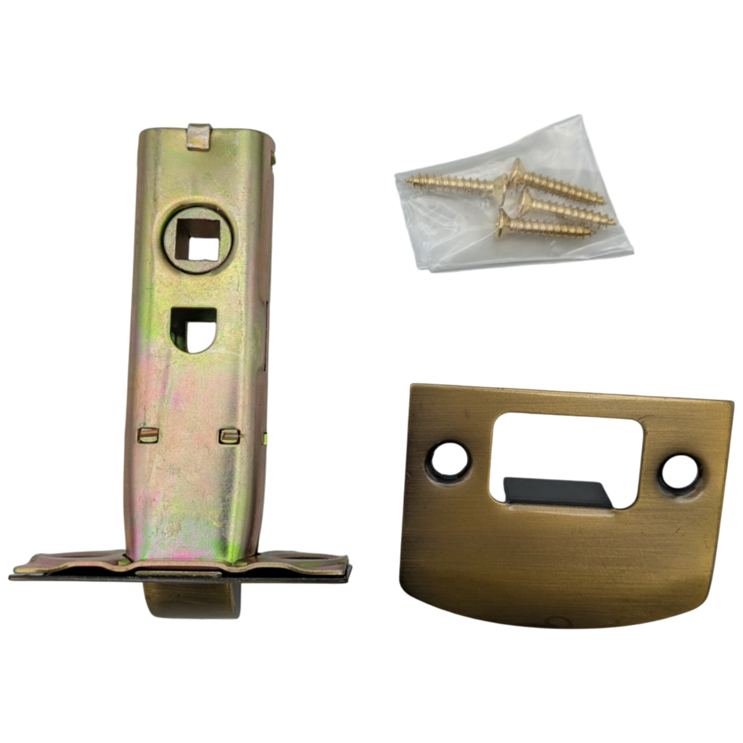 Comes with both the latch and finishing plate. The latch mechanism is a standard 2 1/4 inch (57 mm) inset and approximately 3.2 inches (81 mm) long. Available in several finishes, including polished brass, oil rubbed bronze and polished chrome. The average lead time for this latch is approximately 1 to 2 business days.