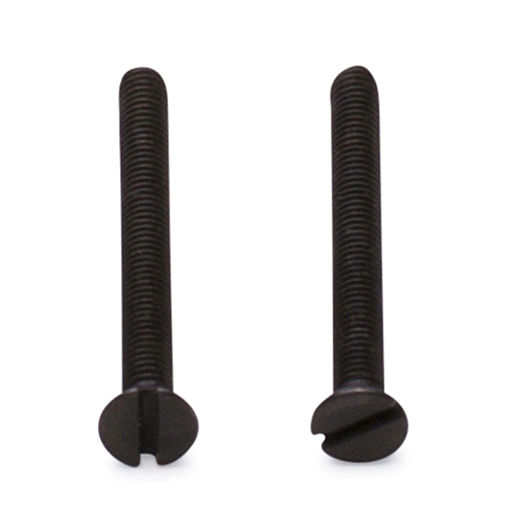 These rosette screws are made to fit a standard 1 3/8 inch door and they measure 40 mm long. They are sold by the pair. These are also available (as an option) in 50 mm long which would accommodate a 1 3/4 inch thick door. This particular product has a lead time of approximately 1 to 2 business days.