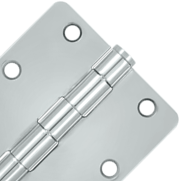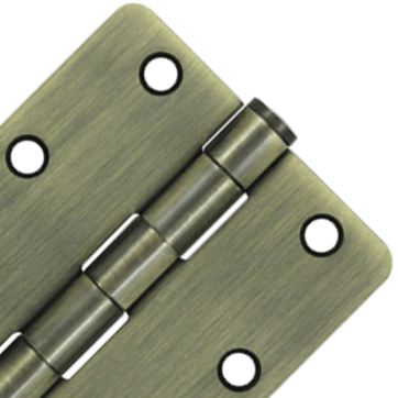 Measures 3 1/2 inches tall by 3 1/2 inches wide with 1/4 radius corners. Available in several finishes, including polished brass, antique brass, oil rubbed bronze, polished chrome and brushed nickel. Comes complete with mounting hardware. The average lead time for this hinge is approximately 3 to 5 business days.