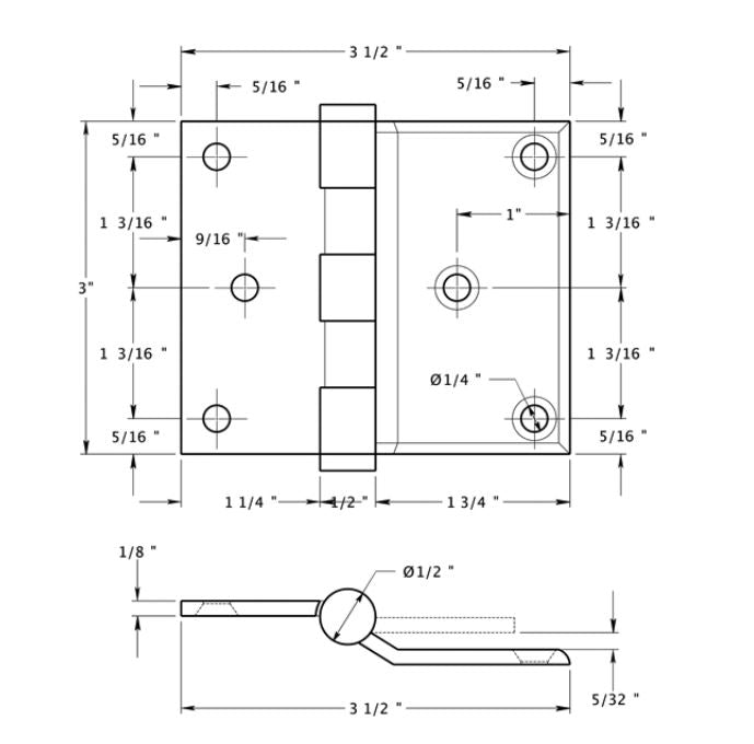 Sold in Pairs - Measures 3 inches tall by 3 1/2 inches wide. Comes complete with mounting hardware. Available in several finishes, including polished brass, antique brass, oil rubbed bronze, polished chrome and brushed nickel. The average lead time for this hinge is approximately 3 to 5 business days.