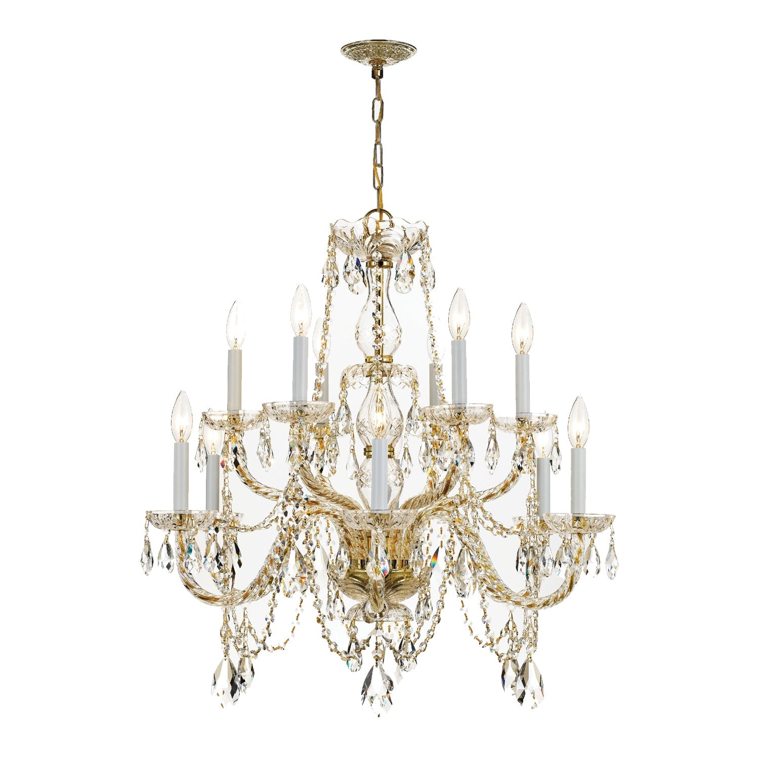 Classic like a timeless piece of jewelry, Traditional Crystal fixtures dazzle with glamour. The lavish fixture is decorated with swags of faceted cut crystal jewels, optimally cut for awe-inspiring sparkle. Traditional crystal fixtures are classic, timeless, and elegant, adding the perfect bit of style to any room.