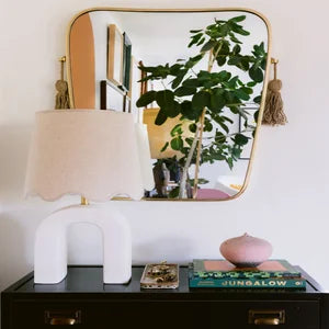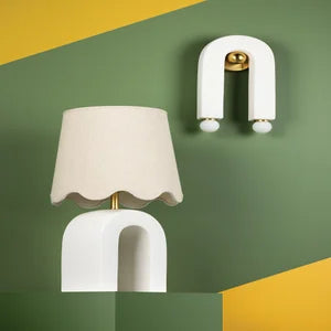 The Roshani Table Lamp by Mitzi is a sophisticated addition to any decor, featuring a natural linen shade that beautifully diffuses light. This elegant lamp stands 24 inches tall and has a diameter of 12 inches, making it a striking centerpiece on any table. It utilizes one E26 medium base bulb (not included) with a maximum wattage of 60W. The stunning aged brass and ceramic raw matte white finish options elevate its modern aesthetic, ensuring it fits seamlessly into both contemporary and traditional spaces.