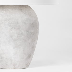 The Zeke Table Lamp by Troy Lighting combines style and functionality with its elegant off-white linen shade and weathered grey ceramic finish. This lamp stands at 29.50 inches tall with a diameter of 18.00 inches, making it a perfect addition to any room. It is designed to accommodate one E26 medium base bulb (not included) with a maximum wattage of 75W, ensuring ample illumination for your space. Additionally, with its plug-in capability, it offers convenience and versatility for various settings.