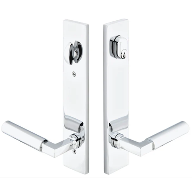 Modern-style backplates paired with Hercules-style levers, crafted from Solid Brass for a sleek, designer look. This is a trim-only set designed to work with your existing multi point locking system—the internal lock box is not included. Choose the configuration that matches your door setup (see diagram). The average lead time for this trim is approximately 3 to 5 business days.