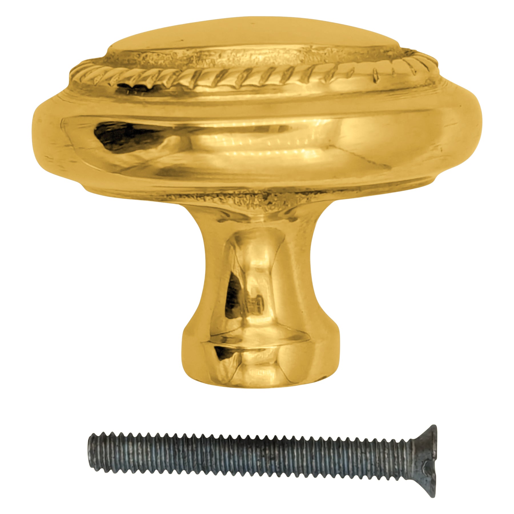 Crafted from solid brass, this cabinet knob showcases a refined roped border that reflects the elegance of English Georgian Roped design. Its timeless detailing adds subtle sophistication to cabinets, drawers, and furniture. Durable and versatile, it brings both beauty and function to any space.