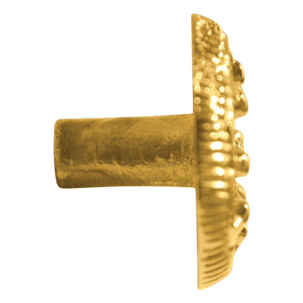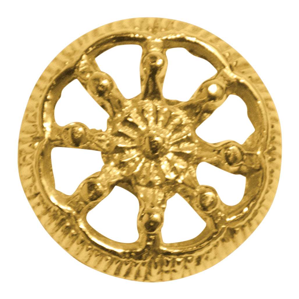 This ornate wheel knob will add a touch of fine detail to your cabinets or drawers, be they in the kitchen, bathroom, or bedroom. This item measures approximately 1 1/4 inch in diameter with a projection of 7/8 of an inch. This product is available in several other finishes and comes complete with mounting hardware.