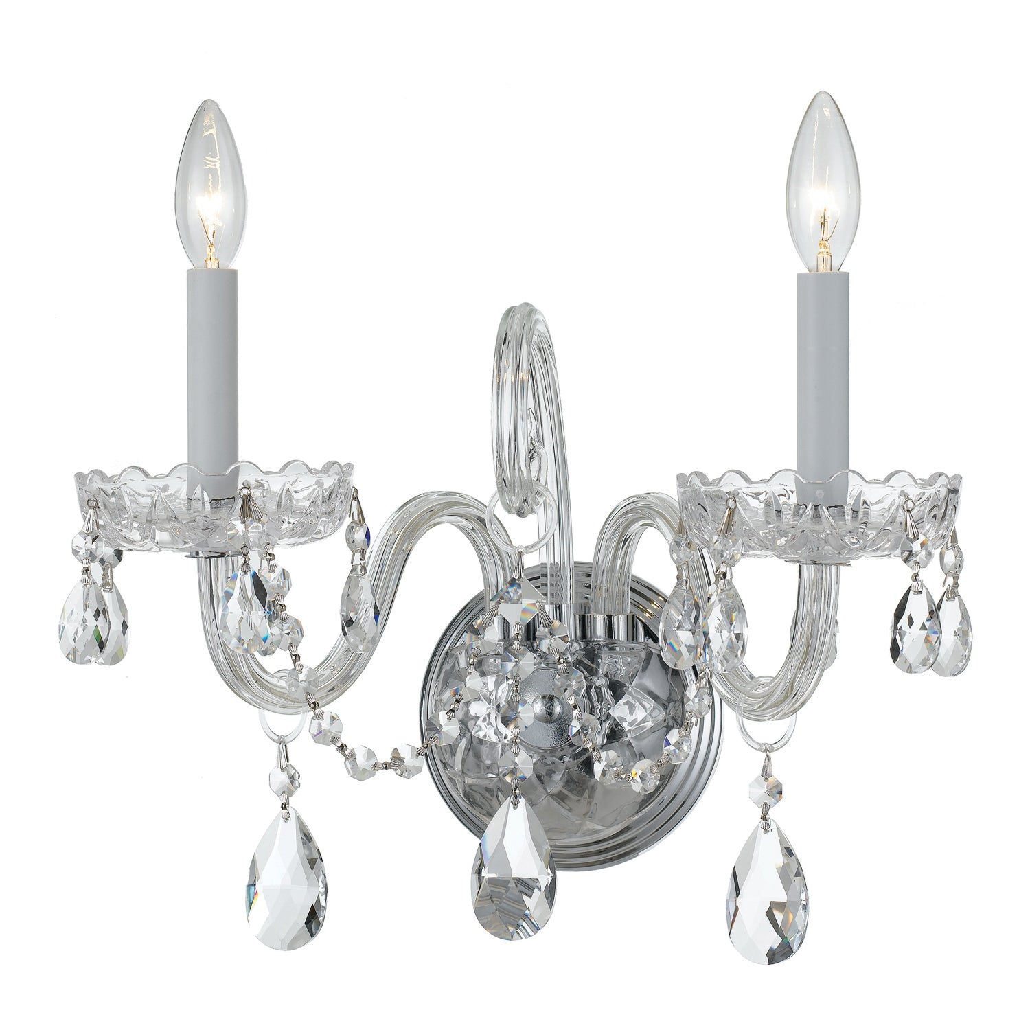 Traditional Crystal 2 Light Spectra Crystal Polished Chrome Sconce