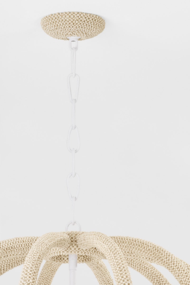 The Lewiston Pendant by Hudson Valley Lighting is a charming lighting fixture designed to enhance any space with elegance. Featuring a unique shade made from COCO beads, this pendant boasts a width and diameter of 24.50 inches and a height of 16.50 inches. It requires three E12 candelabra base bulbs, with a maximum wattage of 8.00W each, providing a warm ambiance. Finished in White Plaster, this pendant complements various decor styles and is rated for UL Damp, making it suitable for areas prone to moisture.