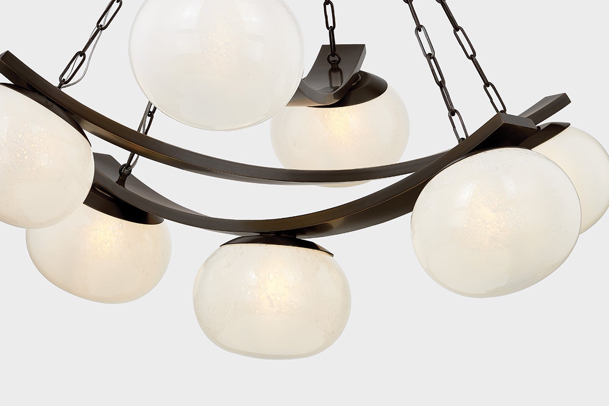 The Duxbury Chandelier by Hudson Valley Lighting is a stunning focal point for any room, featuring a large 43.75-inch diameter and a height of 39.75 inches. It boasts a luxurious glass shade and is available in elegant finishes, including Aged Brass and Distressed Bronze. This chandelier is designed to accommodate seven E26 medium base bulbs, each with a maximum wattage of 15W, ensuring ample illumination. While it does not plug in, it is rated for UL Damp locations, making it perfect for areas with higher humidity.