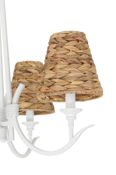The Kokomo 4 Light Chandelier in Matte White is an elegant addition to any indoor space, showcasing a harmonious blend of style and functionality. This chandelier requires four medium base 60-watt bulbs (not included) and features a striking natural sea grass shade. With dimensions of 21.25 inches in width and 17.88 inches in height, it is designed for chain hanging and boasts a leadwire length of 150 inches for flexible installation. Additionally, it has a safety rating of cETLus and is backed by a 1-year limited warranty, ensuring both quality and peace of mind.