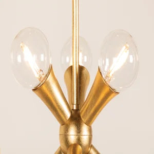 The Kendall Ceiling Fixture by Mitzi is a stunning addition to any space, featuring a Vintage Gold Leaf finish that exudes elegance. Measuring 12 inches in width, 12 inches in length, and 19.75 inches in height, this fixture accommodates six lamps with a maximum wattage of 8W each. It utilizes E12 candelabra base sockets and is recommended for use with G16.5 bulbs (not included), making it perfect for ambient lighting. Although it does not plug in, it is UL Damp rated, ensuring it's suitable for use in humid environments.