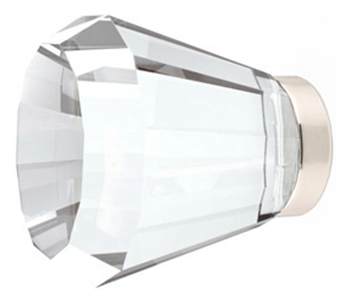 This cabinet knob is constructed from fine crystal and comes in a Brookmont style design. Measures 1 inch in diameter with a 1 3/8 inch projection. Comes complete with mounting hardware. Available in several finishes, including antique brass, polished chrome and polished nickel. The average lead time for this knob is approximately 3 to 5 business days.