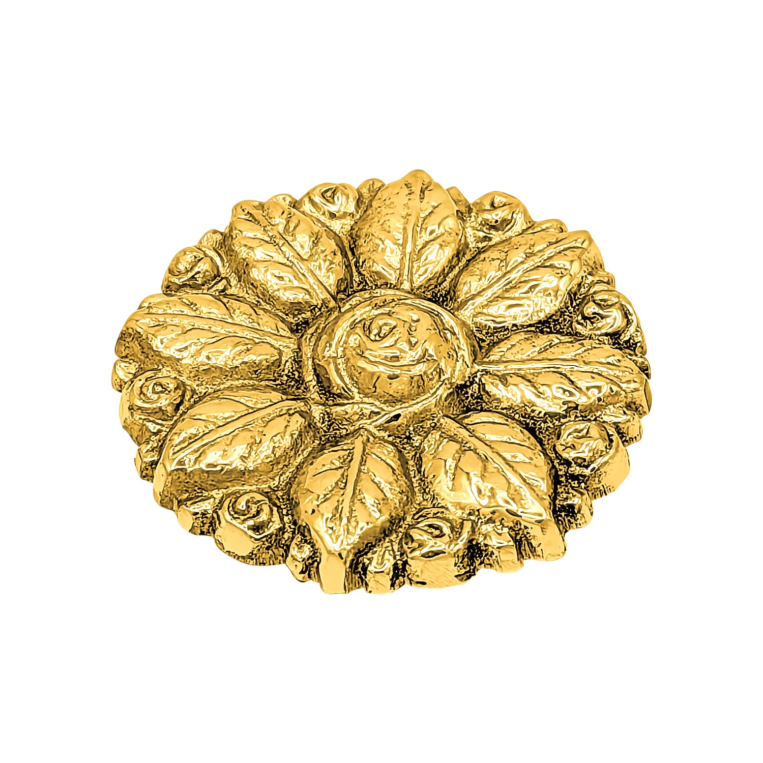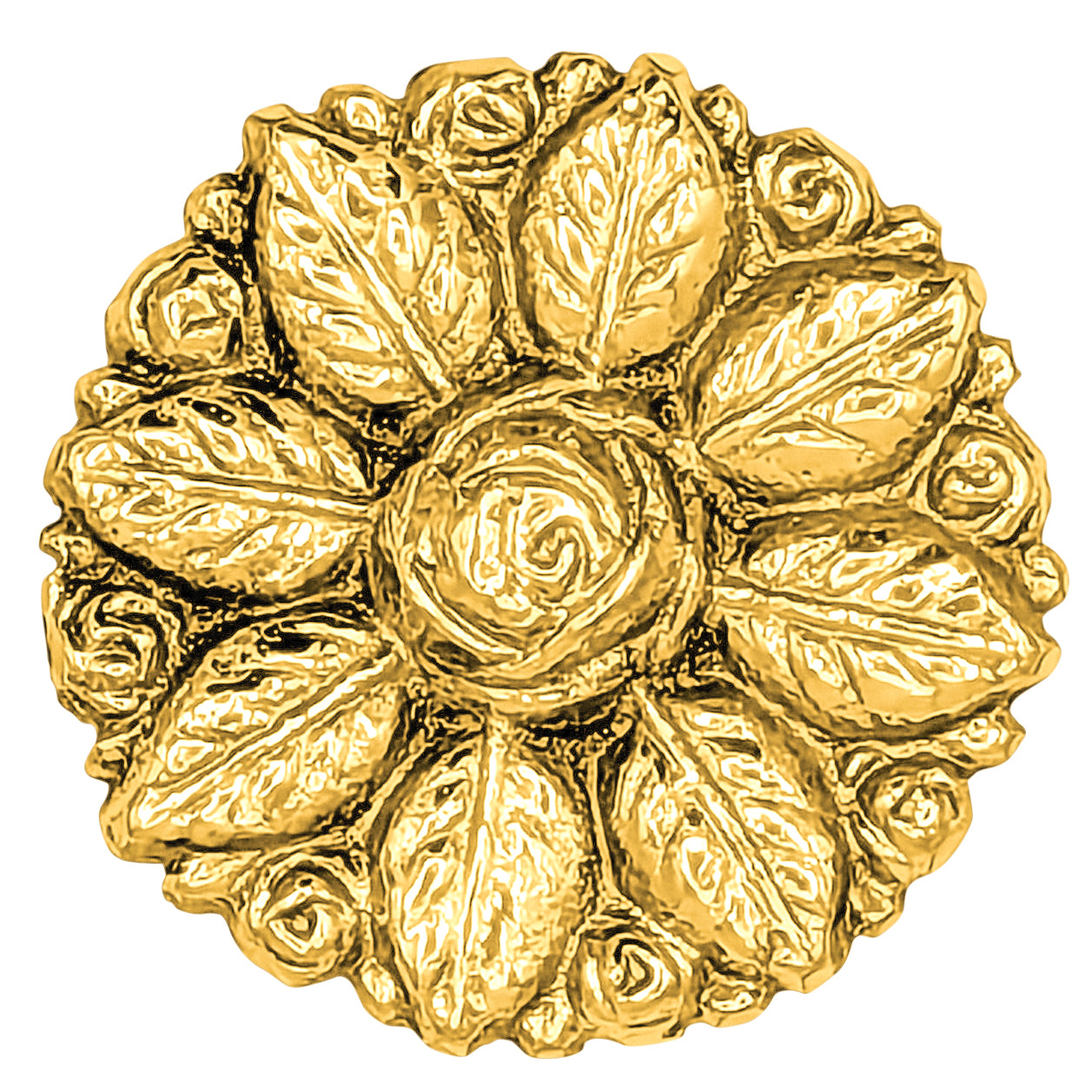 This knob features a rose design and has a diameter of 2 1/8 inches with a projection of 0.95 Inches. It comes complete with all mounting hardware. It is available in a variety of finishes. This particular product has a lead time of approximately 1 to 3 business days.