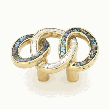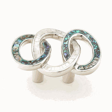 The Fair Isle collection features knobs & pulls with elaborate designs that make for appealing additions to your home. Available in both polished brass and polished nickel with a gorgeous imperial shell and mother of pearl style inlay. Measures 2 1/4 inches wide (3/4 inch c-c) with a 1 1/4 inch projection. Comes complete with mounting hardware. This cabinet pull has a ship time of 3 to 5 business days.