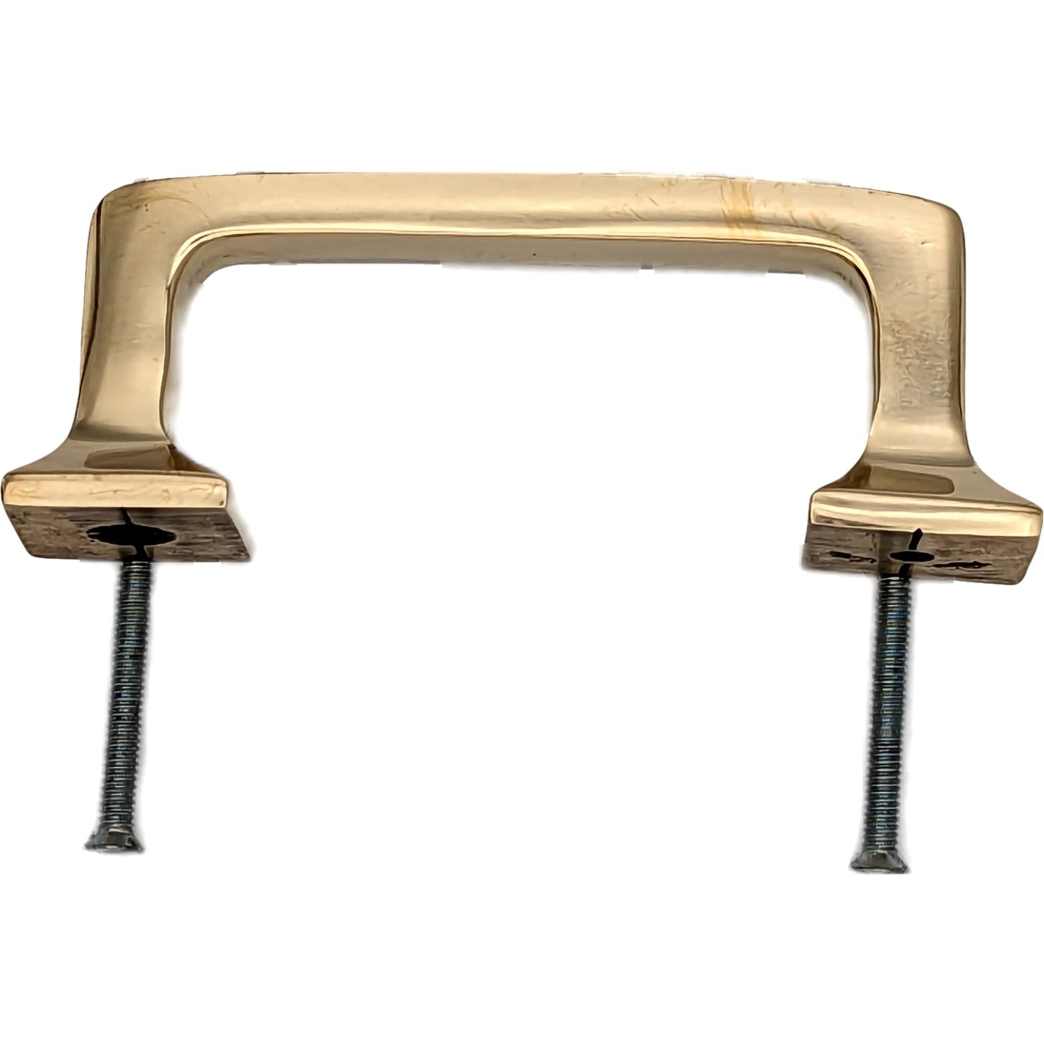 Each pull is constructed from solid brass and finished by hand. The square traditional pull measures 4 1/4 inch wide by 1 1/2 inch tall. This pull has a projection of approximately 1 1/2 inches. The center-to-center mounting distance is 3 1/4 inches (c-c 3.25). This product comes as an unlacquered natural brass and it will patina over time. A high strength lacquer coating is available upon request. This pull style may also available in a 3 inch center to center mounting. Available in several different finishes including Polished Brass, Antique Brass and Black Bronze.