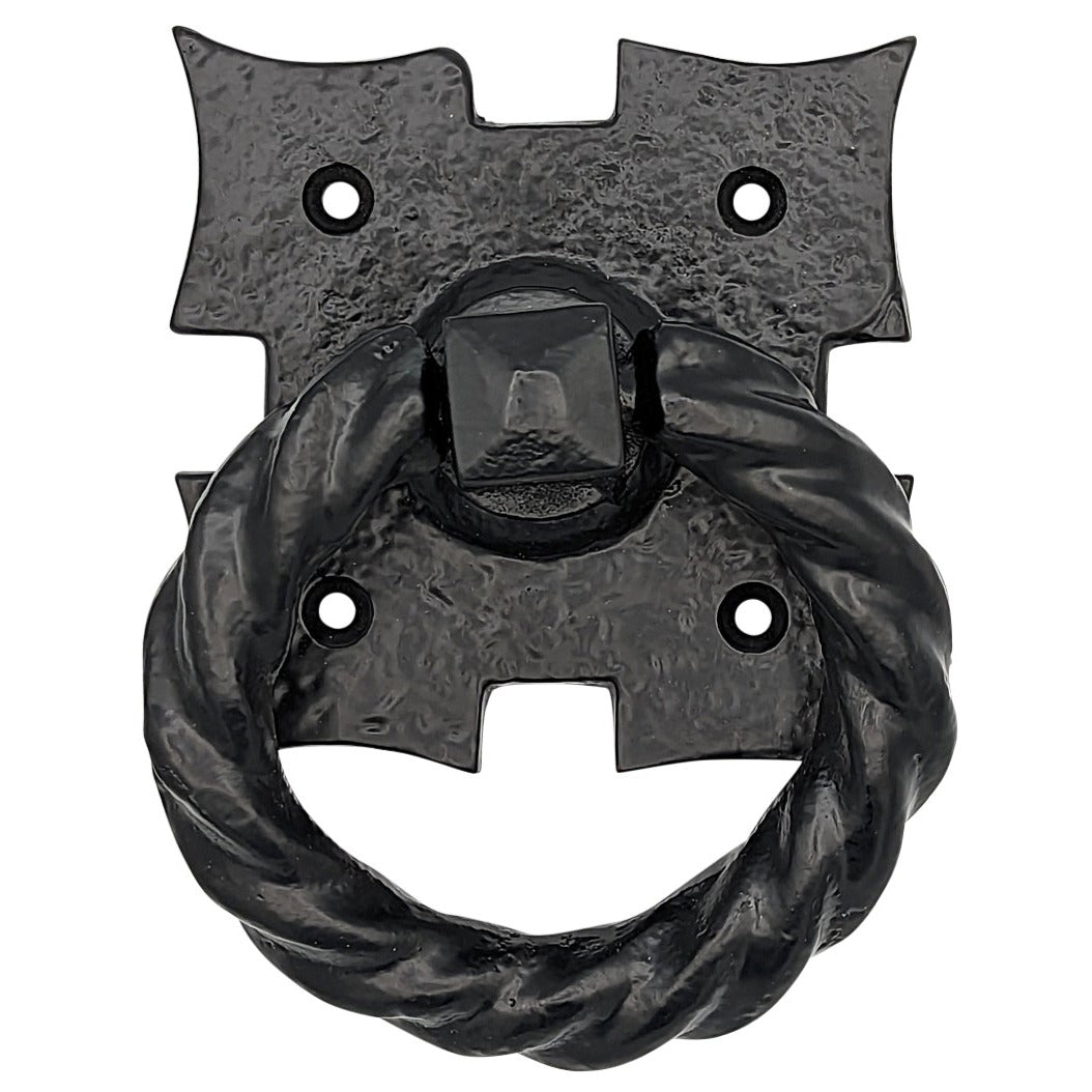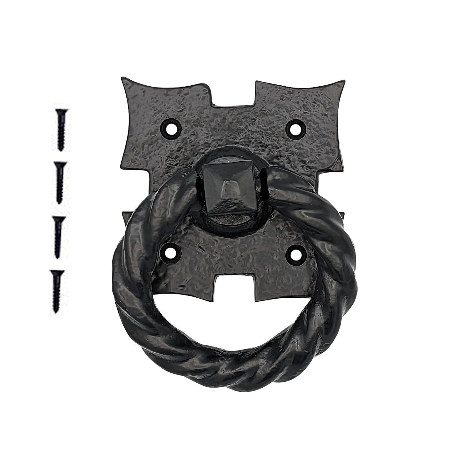 This drawer pull is constructed from solid Iron and hand finished. Each piece measures 4 1/8 inch in diameter with a 4 3/4 inch projection when ring is pulled straight. The base measures 3 7/8 inch square. The average lead time for this particular product is 2 to 4 Business Days.