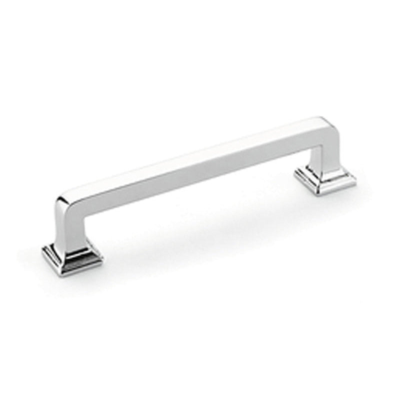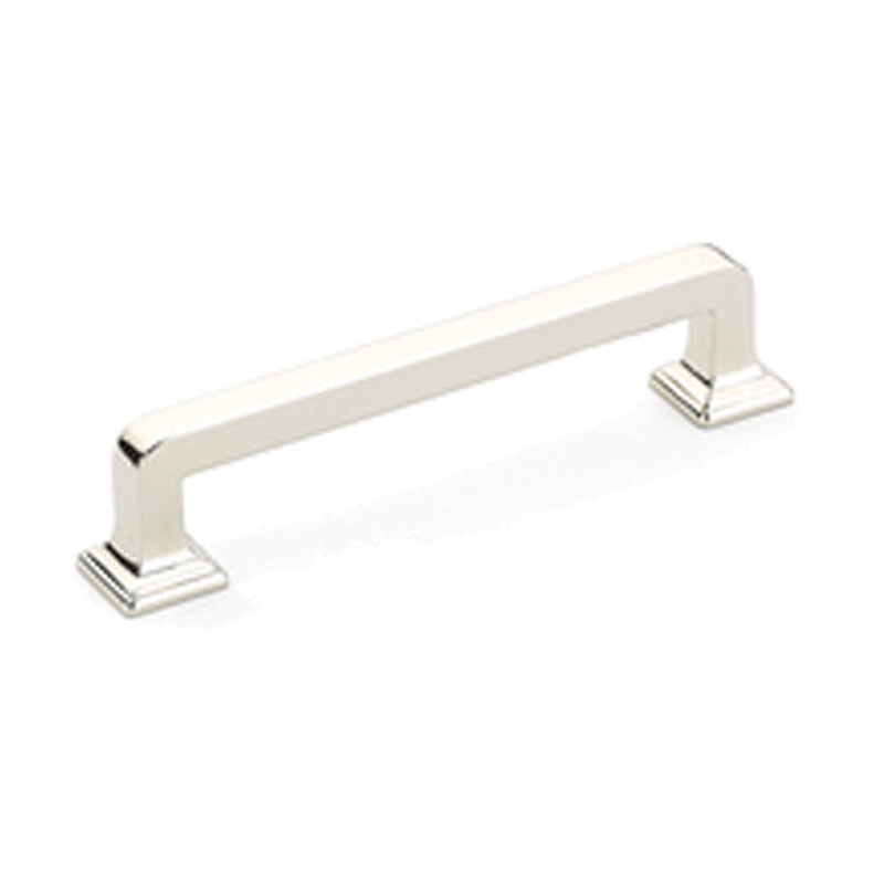 This cabinet pull from Schaub & Company uses simple lines to create this elegant style design. Finished in Ancient Bronze, Polished Chrome, Polished Nickel, and Satin Nickel. This pull measures 4 3/4 inches wide with a center to center distance of 4 inches. Projects 1 inch. Comes complete with mounting hardware. The average lead time for this particular product is 3 to 5 Business Days.