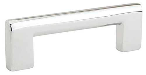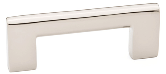 Measures 4 5/8 inches long with a 4 inch center to center mounting distance (4.00 c-c) and a projection of 1 3/8 inch. Coordinating knob available. Comes complete with mounting hardware. Available in either polished chrome or polished nickel finishes. The average lead time for this pull is approximately 3 to 5 business days.