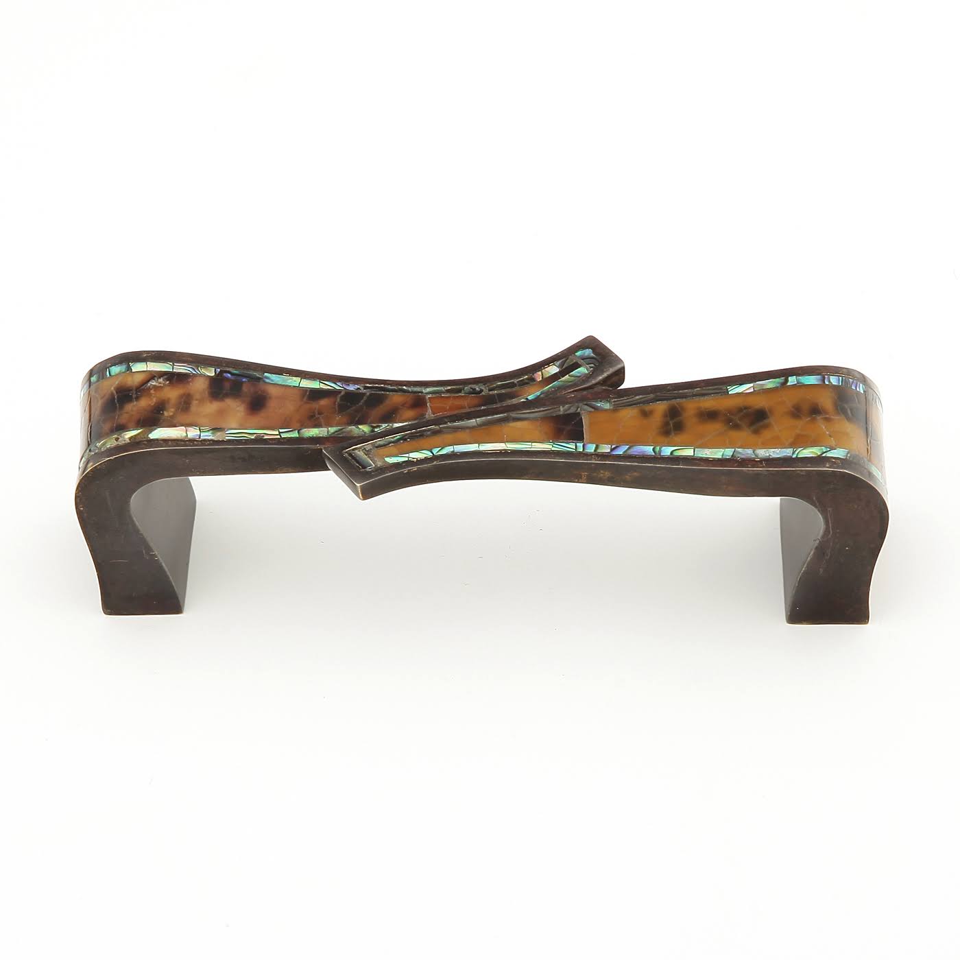 The Avalon Bay collection from Schaub & Company features knobs & pulls with delicately crafted unique styles that add that extra touch of elegance to any room of your choosing. This pull is constructed from solid brass material with a smooth dark antique bronze finish. Measures 4 7/8 inches wide with a 4 inch center to center mounting distance. Projection measures 1 1/8 inches. Comes complete with mounting hardware.
