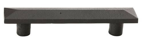 This cabinet pull features a unique pyramid style design and is forged from bronze material. Measures 5 1/2 inches overall with a 4 inch center to center. Comes complete with mounting hardware. Available in either medium bronze or matte black finishes. The average lead time for this pull is approximately 3 to 5 business days.