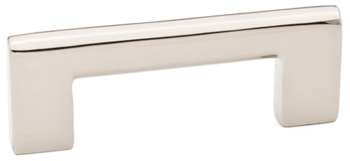 Measures 6 5/8 inches long with a 6 inch center to center mounting distance (6.00 c-c) and a projection of 1 3/8 inch. Coordinating knob available. Comes complete with mounting hardware. Available in either polished chrome or polished nickel. The average lead time for this pull is approximately 3 to 5 business days.