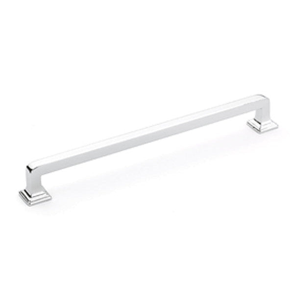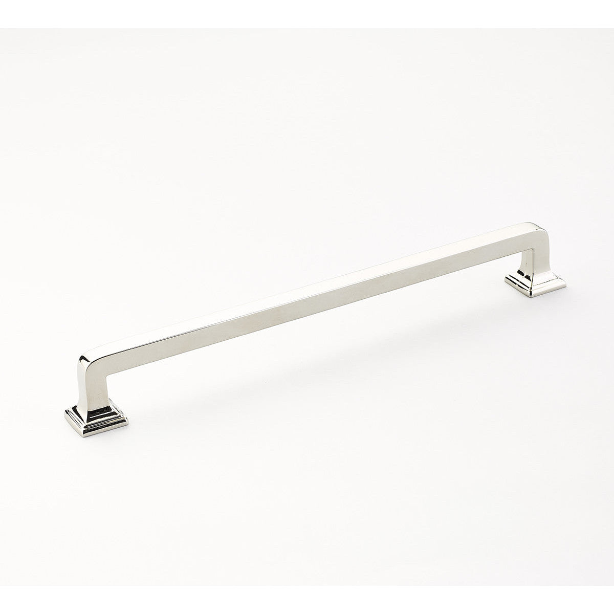 The Menlo Park cabinet pull from Schaub & Company is finished in one of several gorgeous finishes including Ancient Bronze, Polished Chrome, Polished Nickel, and Satin Nickel. Made from solid brass. This pull measures 8 1/2 inches wide with a center to center distance of 8 inches. Projects 1 1/8 inches. Comes complete with mounting hardware. The average lead time for this particular product is 3 to 5 Business Days.
