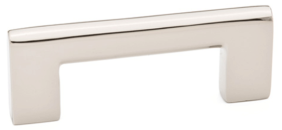 Measures 8 5/8 inch long with a 8 inch center to center mounting distance (8.00 c-c) and a projection of 1 3/8 inch. Coordinating knob available. Comes complete with mounting hardware. Available in either a polished chrome or polished nickel finish. The average lead time for this pull is approximately 3 to 5 business days.